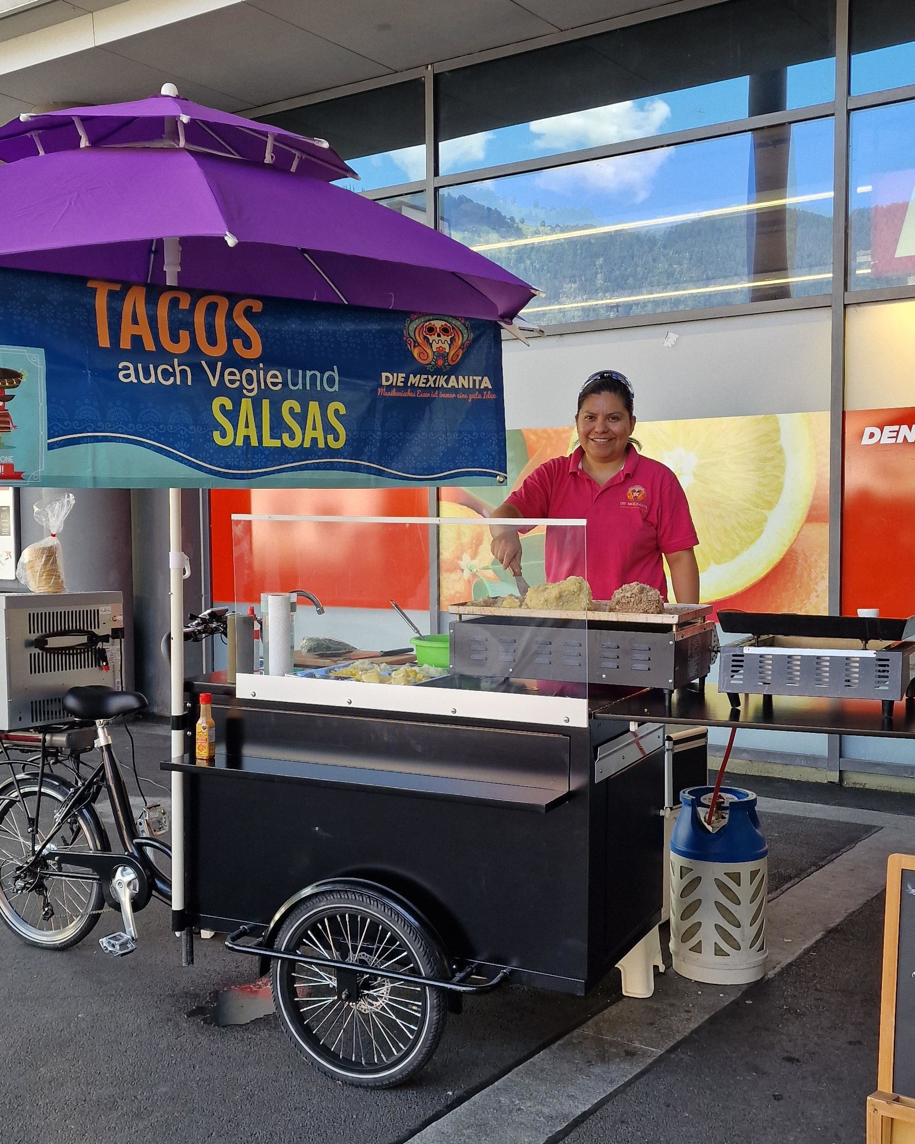 Wir betreiben einen mobilen Tacostand, an dem wir authentische mexikanische Tacos mit unseren hausgemachten Maistortillas verkaufen. Schauen Sie auf unserer Instagram-Seite nach, um zu erfahren, wann und wo wir unseren Stand aufstellen. Vergessen Sie nicht, uns auf unseren sozialen Plattformen zu folgen!
